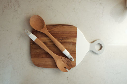 Paint the wooden cutting board and salad cutlery. With this simple DIY tip, they become a nice feature in the kitchen, on the dining table or as a gift.