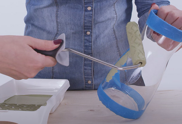 Use a mini roller for extra fine surfaces to get a really smooth finish. Now paint directly over the masking tape that you have attached.