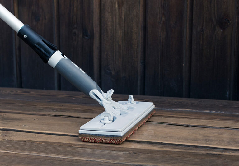 Many people don’t think to wash their new patio before treating it. There may be a layer of chemicals on the surface of the boards, as well as pollen and other things that often accumulate on the patio in a short period of time. Therefore, make sure to clean your patio with a suitable detergent, which is also gentle on the new boards. Rinse well and let it dry thoroughly. Want to know more about the best way to clean your patio? Read our step-by-step guide here.