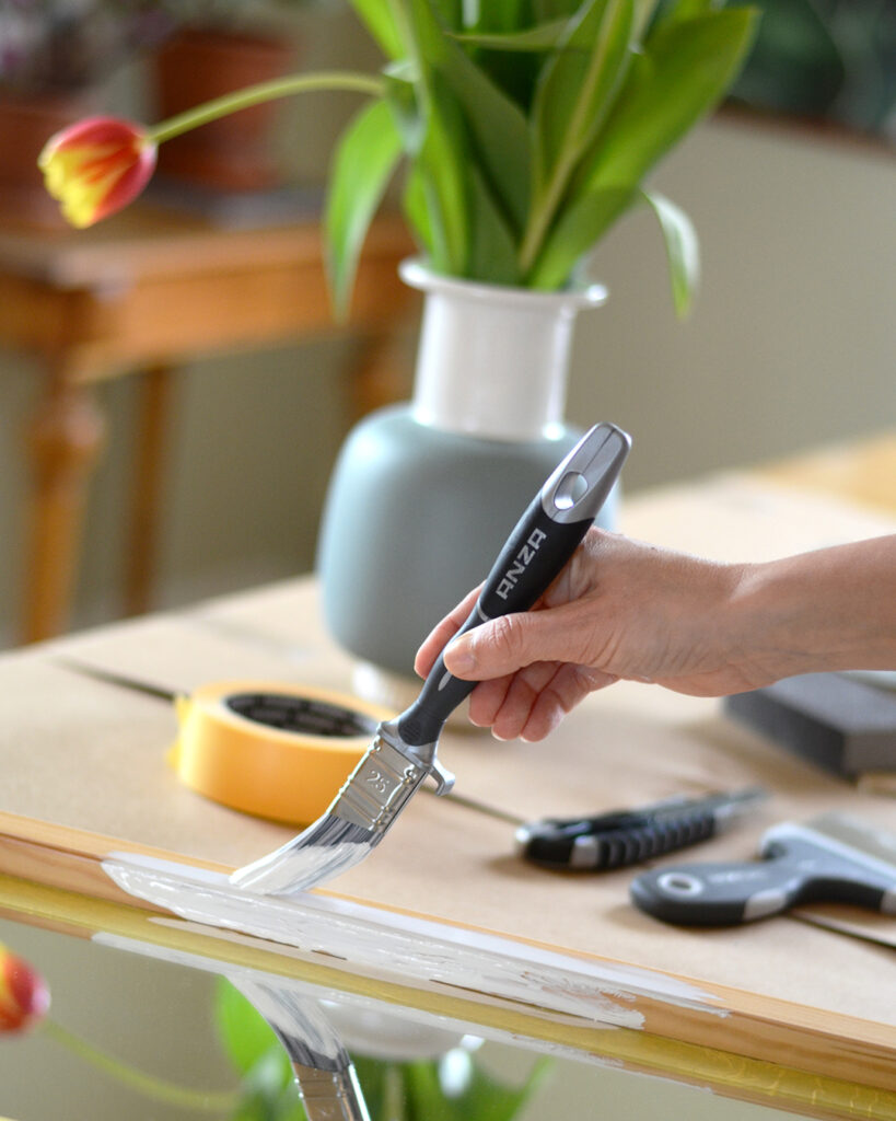 Are you painting woodwork, doors or furniture and want a perfect finish? The Platinum Angle Cut Brush has an optimal bristle composition that ensures you get a good amount of paint and provides an extra fine paint finish. The angle cut brush head also make it easier to control the brush's contact with the surface, so you can paint with greater precision. The brush's ergonomic handle has multiple gripping options so you can hold your brush comfortably throughout the job. Choose a smaller brush size if you're painting smaller areas and details and a larger one for wide, flat surfaces. Practical storage case included which keeps the paint wet for up to 72 hours